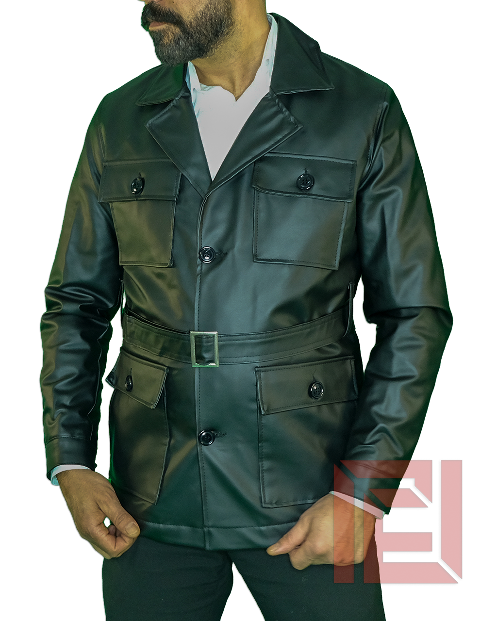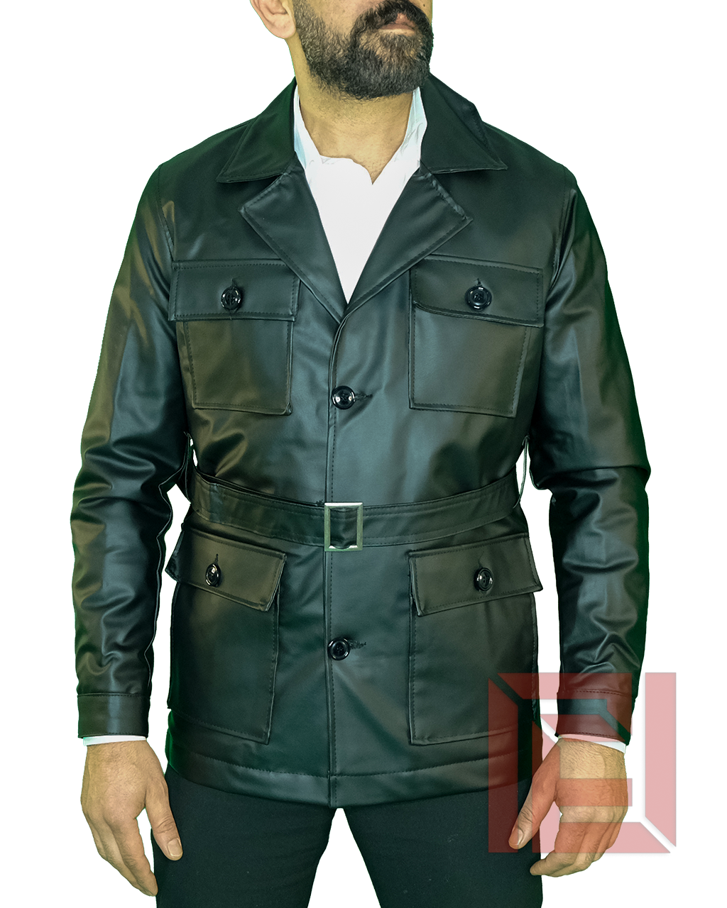Önden düğme kapamalı tasarımı klasik şıklığı desteklerken, geniş yaka formu modele maskülen ve net bir ifade kazandırır. Göğüs ve bel kısmındaki kapaklı cepler hem estetik hem de fonksiyonel kullanım sunar. Belde yer alan ayarlanabilir kemer detayı, ceketin vücuda daha dengeli ve güçlü bir formda oturmasını sağlar.